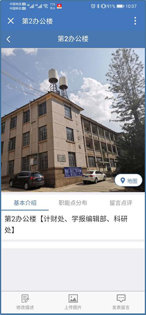 网友可通过修改描述提交各实景文字描述,可通过上传图片上传拍摄的各实景图片,留言点评可对各实景进行留言点评,这些信息后台审核后将在前台展示。