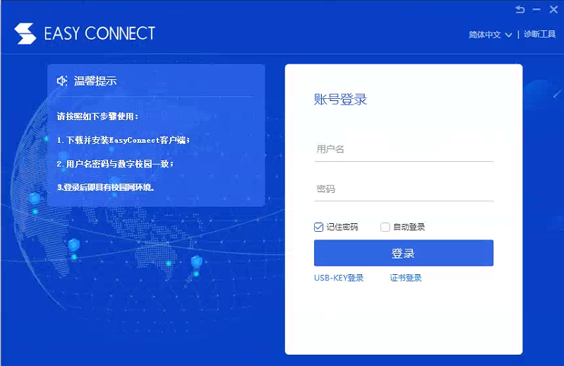 欢迎使用玉溪师范学院VPN,VPN只能在校外使用,尽量使用客户端登录,WEB登录方式受个人电脑及浏览器影响较大,会出现登录不成功现象。打开客户端登录成功后即可访问校内资源,WEB登录页面:https://vpn.yxnu.edu.cn,具体使用方法如下;