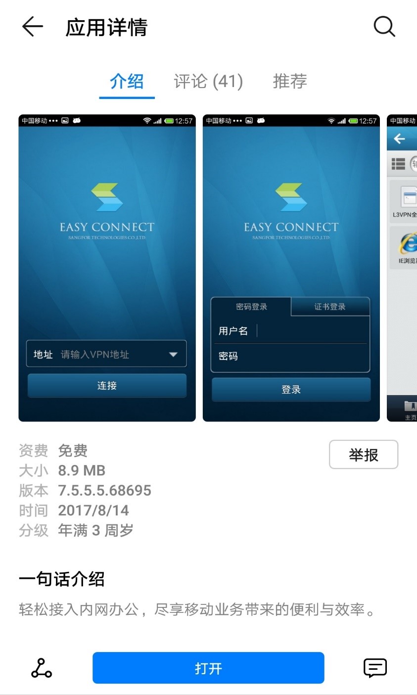 6、安卓手机可在应用商店内下载安装EasyConnect的APP,安装成功后打开软件,地址输入:https://vpn.yxnu.edu.cn,输入用户名和密码后点击登录即可访问校内资源;